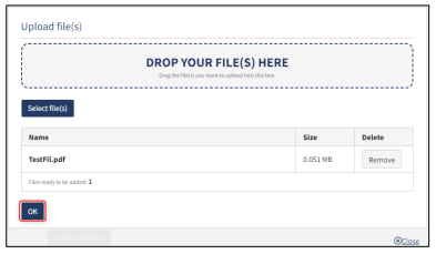 When all files to be uploaded have been added to the list, click "OK".